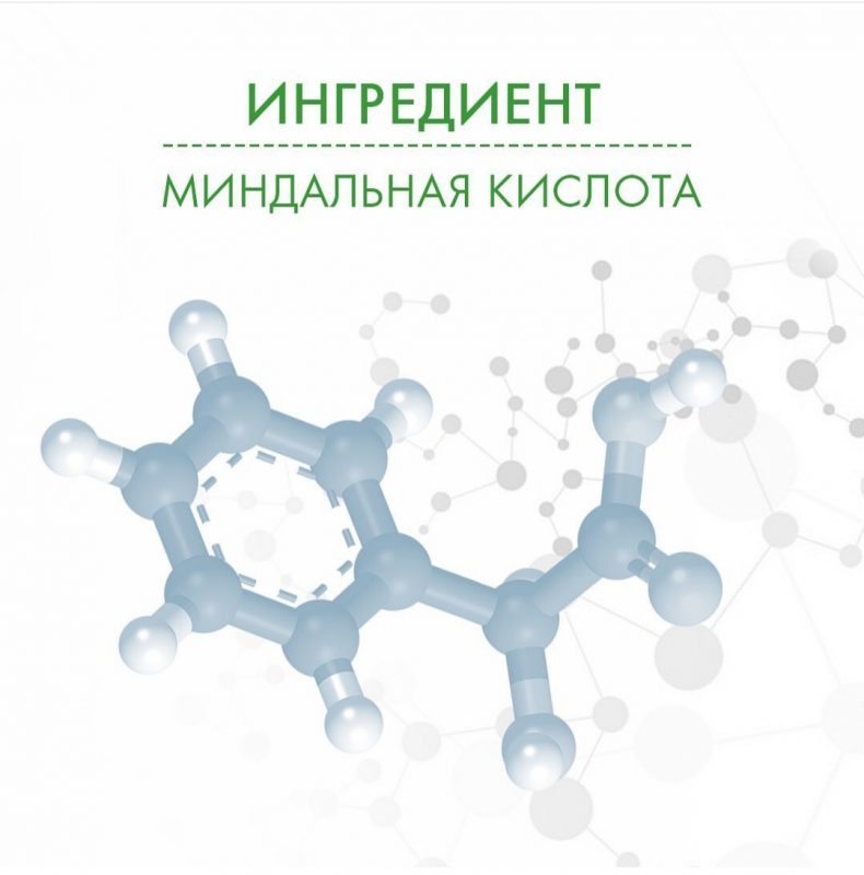МИНДАЛЬНУ (феноксигликолева) кислоту добувають з гіркого мигдалю методом гідролізу, отже продукт є цілком натуральним. Мигдальна кислота викликає сильне відлущування відмерлих клітин і чудово бореться із зовнішніми запаленнями.