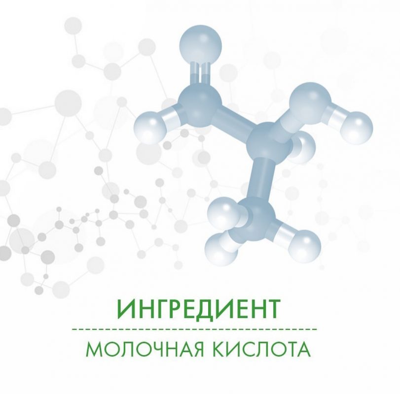 ІНГРЕДІЄНТ – Молочна Кислота. Це унікальний природний компонент, здатний регулювати водний баланс у шкірі будь-якого типу, відновлювати захисні функції. Завдяки цьому повертається здатність ефективно протистояти шкідливим впливам довкілля. Зовнішніми проявами цього процесу є покращення кольору обличчя, підвищення зволоженості, еластичності та пружності шкіри, зменшення глибини зморшок. Речовина зустрічається у двох формах – L (лактат) і D, з яких тільки косметична форма L – має високу біологічну активність. У косметологічній промисловості сполуку одержують у процесі природного бродіння цукрів за участю молочнокислих бактерій роду Lactobacillus.