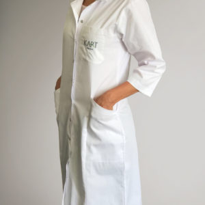 Удобный и практичный рабочий халат косметолога с логотипом KART. Изготовлен из прочного, дышащего материала, не вызывающего дискомфорта при работе. Ткань используется при пошиве медицинской одежды. Произведен в Израиле, компанией UNIDRESS. Внешняя сторона изделия гладкая и устойчивая к загрязнениям, хлопковая составляющая придает ощущение комфорта.
