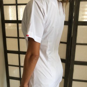 Короткий белый халат для мастеров педикюра и косметологов, короткий рукав